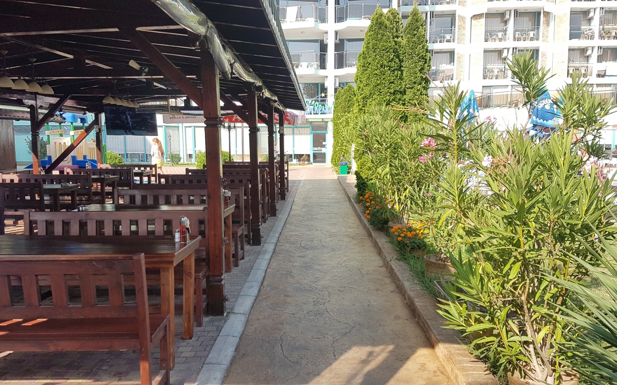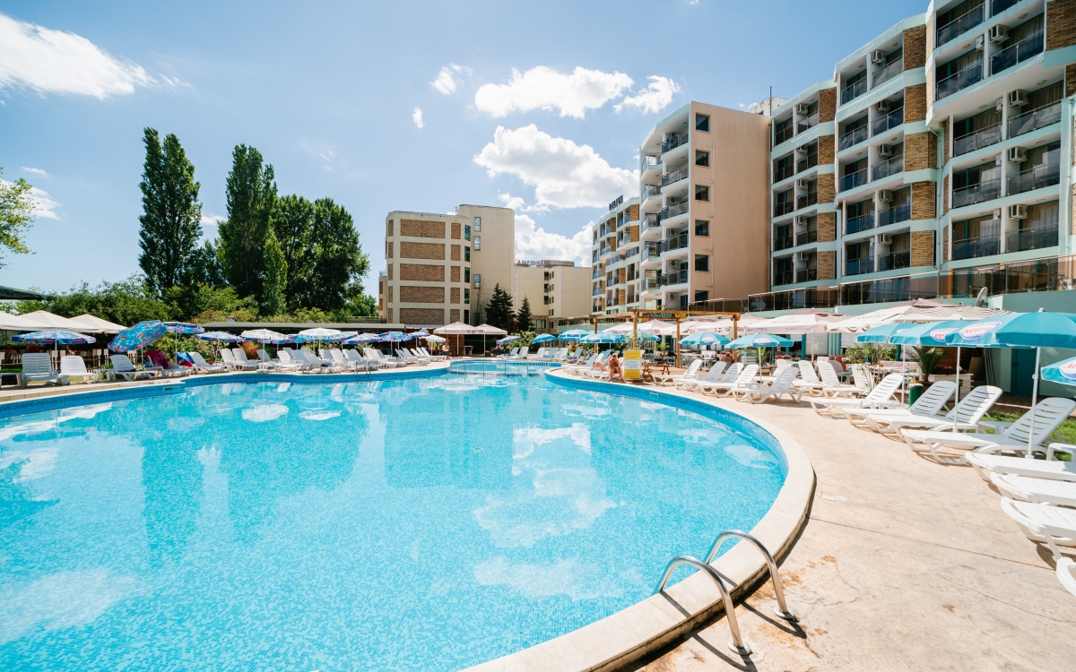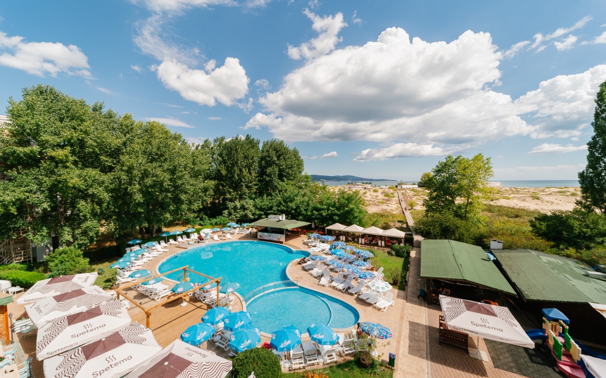 10:00 - 22:00 ч. • Безалкохолни напитки от post mix (кола, фанта, спрайт, тоник, сокове, газирани напитки) в основния ресторант по време на хранене; Предлага се и на бара край басейна