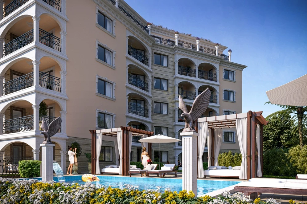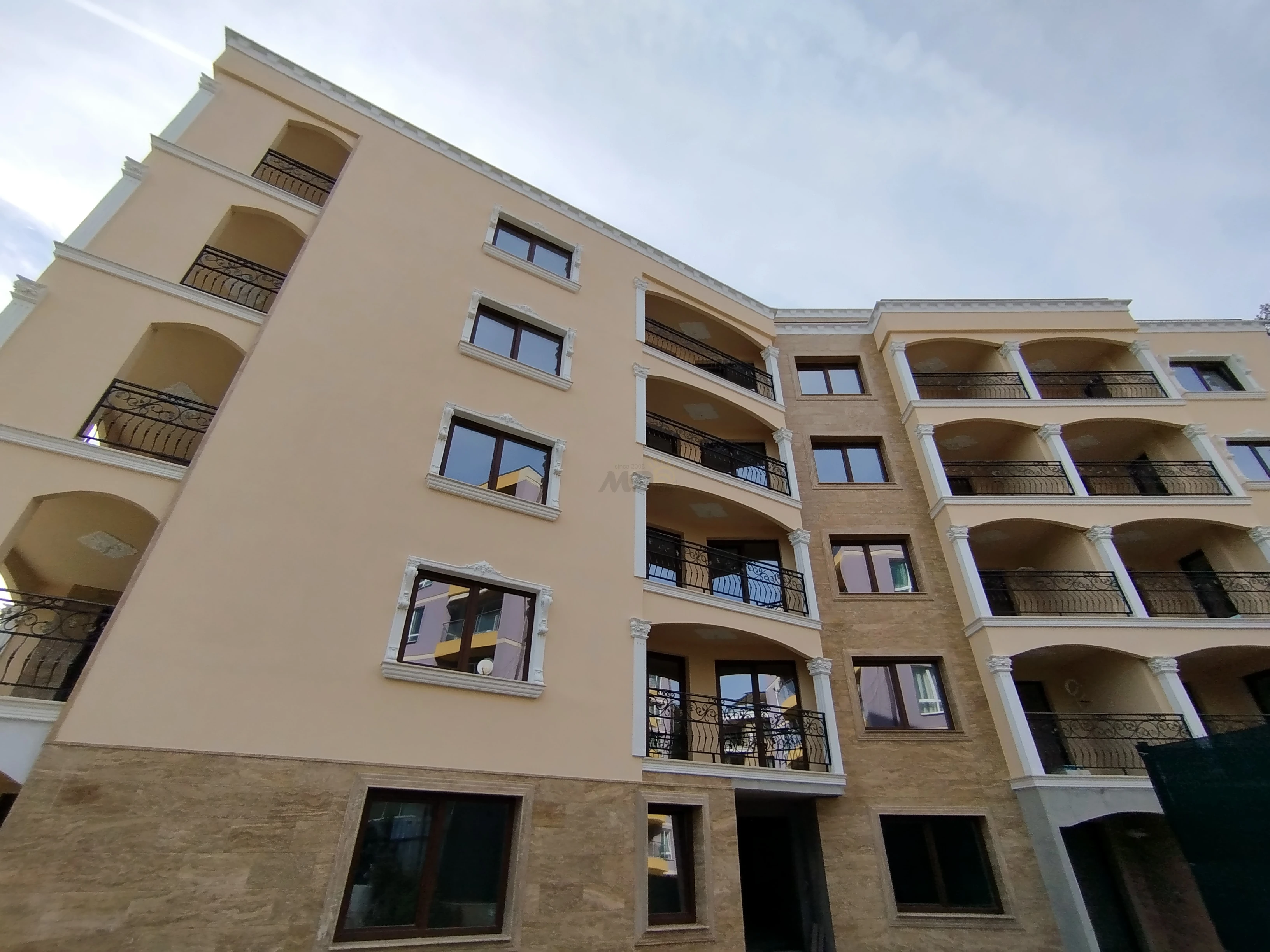 Елегантен, луксозен и модерен комплекс, издържан в съвременен архитектурен стил, разположен на първа линия море, в новата част на гр. Несебър, в непосредствена близост до историческата зона на града. Комплексът е от затворен тип, впечатлява със своята изтънченост и красива фронтална гледка към морския залив от всички апартаменти. Местоположението е много добро – в комуникативен район, с добре организирана инфраструктура, в близост до парковата зона на града. Комплексът предлага за продажба двустайни и тристайни апартаменти с функционални разпределения, завършени до ключ, което включва подово покритие, боядисани стени и тавани, оборудвани бани,климатик. Сградата е с луксозни общи части, модерен асансьор и контролиран достъп.Подходяща за целогодишно ползване.