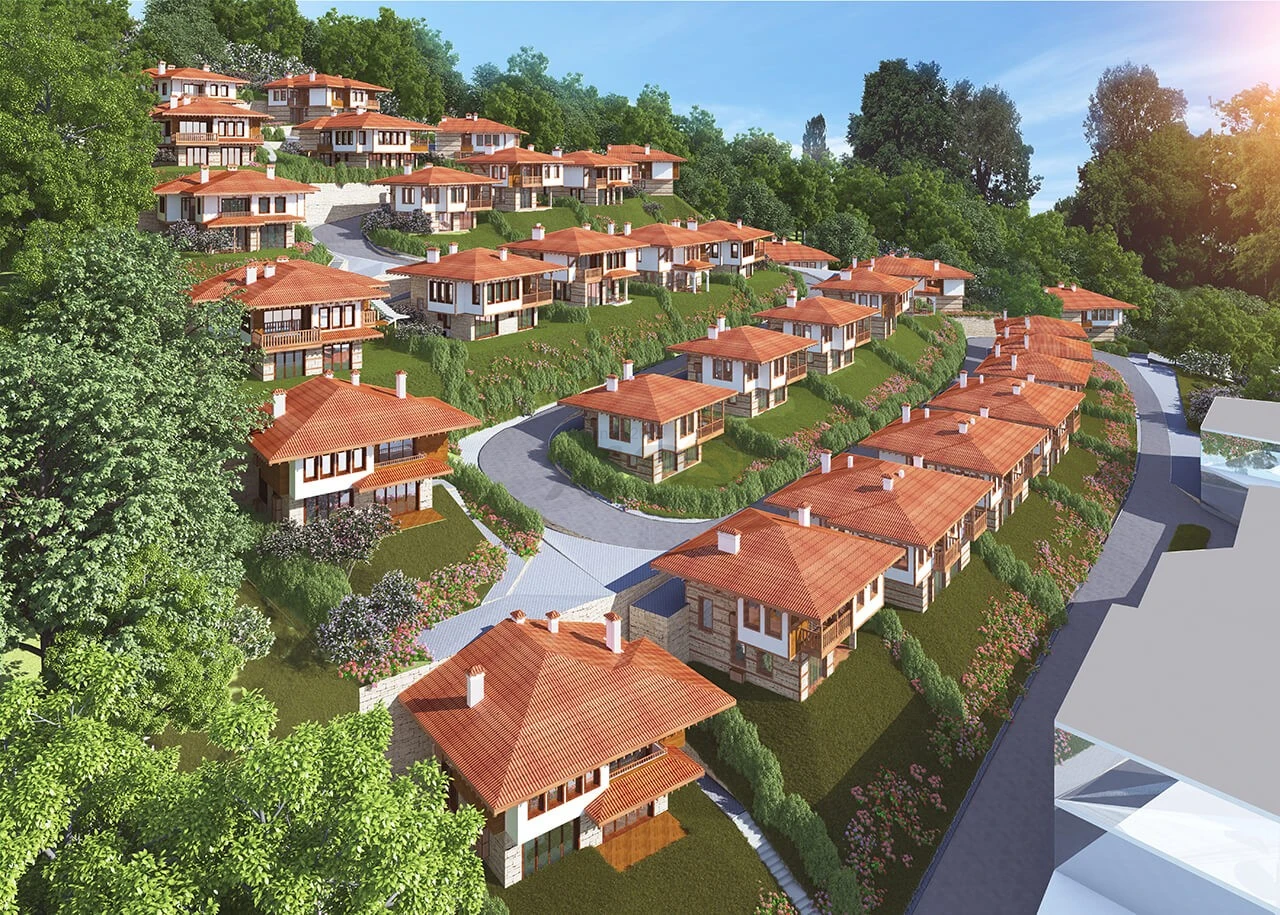 Всички използвани материали са природосъобразни, екосертифицирани от висок клас, като обликът на комплекса е в унисон със заобикалящата го горска среда, което  в съчетание с близостта на морето, планината и престижната локация напълно оправдава инвестицията в закупуване на къща в комплекса.